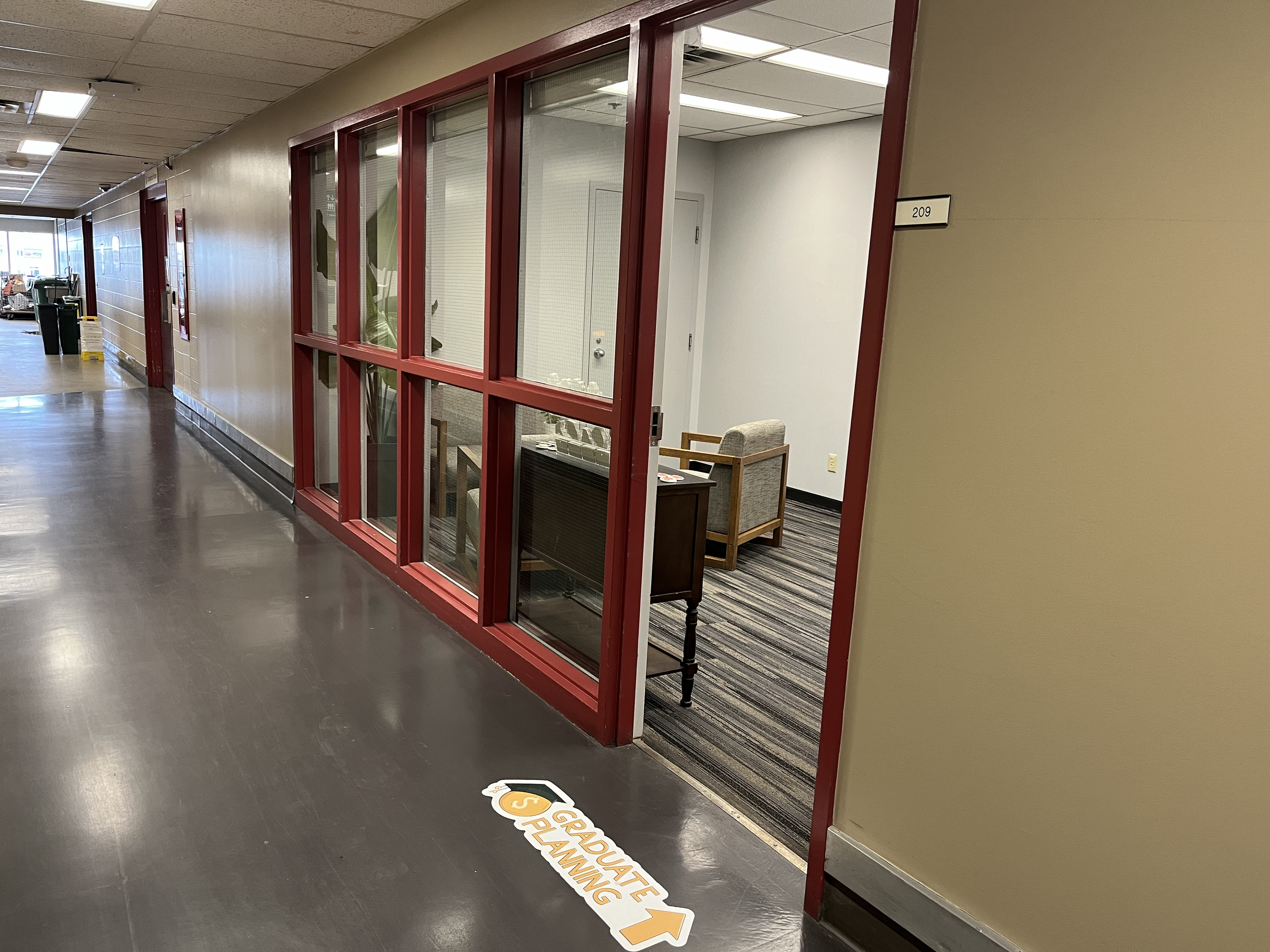 Turn down the hallway that is directly across the big blue RBC.